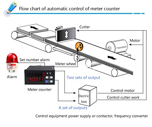► Uscita di lunghezza fissa ◄ quando il metro per contare il (è possibile impostare due diversi segnali di contatto di uscita numerica), strumento (normalmente chiuso normalmente chiuso), collegato con il contatto normalmente chiuso può controllare direttamente l'arresto dell'apparecchiatura o tagliare altri attuatori, come l'allarme, il contatto normalmente aperto può controllare l'avvio della macchina o l'elettricità l'allarme è collegato con il contatto normalmente aperto, nel numero di metri, impostare il tempo di allarme arriva, 0.Allarme 1-9.9 secondi arbitrarile.