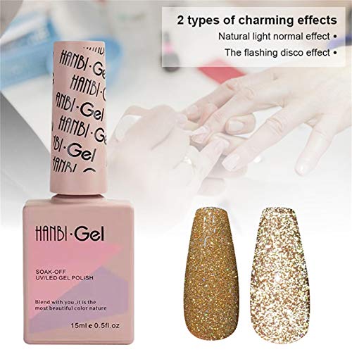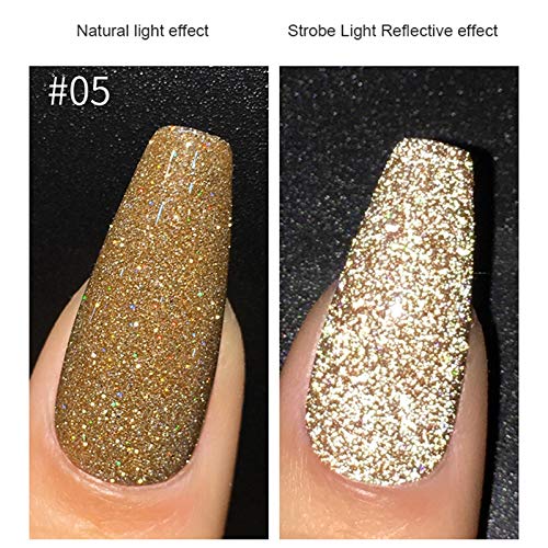 Gel riflettente con brillantini e diamanti: lo smalto per unghie con brillantini utilizza polvere di diamante rotta e materiali in polvere di diamante lucida, 2 tipi di effetti affascinanti: effetto normale della luce naturale. L'effetto discoteca lampeggiante.