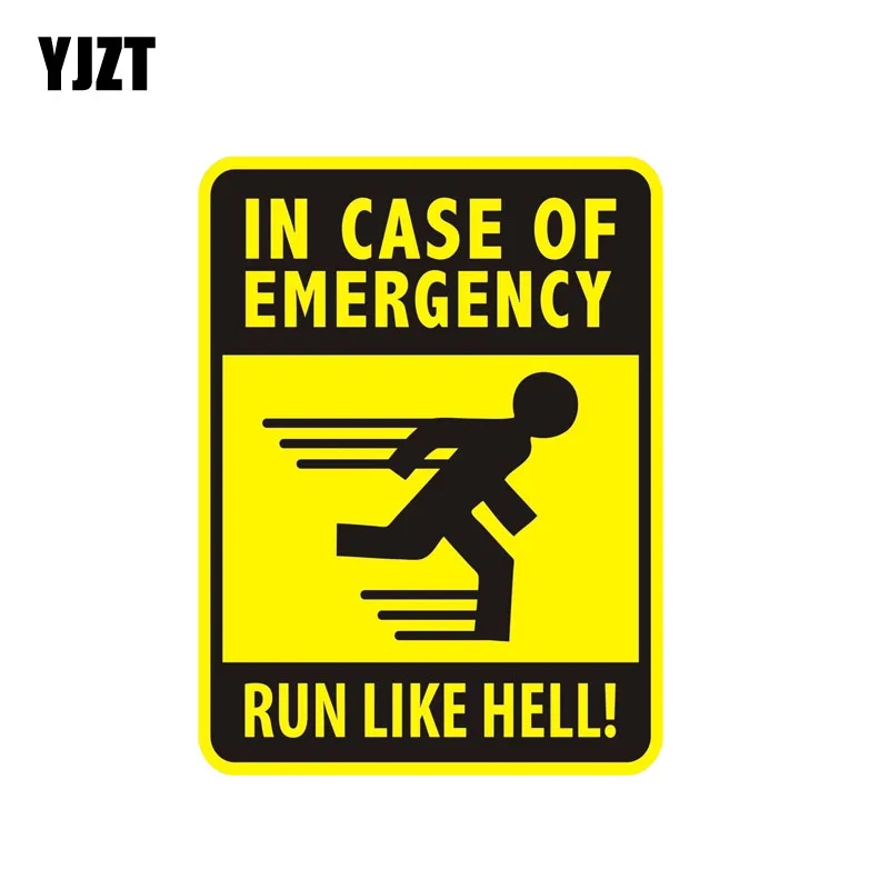 YJZT 10.4CM*13.8CM In Case Of Emergency Run Like Hell PVC Decal Car Sticker 12-0535
