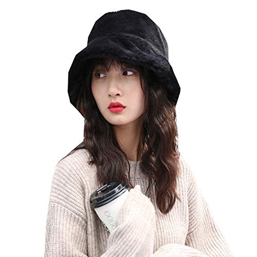 Ykeyi, cappello invernale da donna in finta pelliccia con cappello a secchiello in peluche Nero da donna