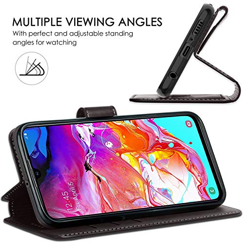 Ykooe Cover Samsung Galaxy A70, Custodia in Pelle PU Portafoglio Protettiva Flip Caso per Samsung Galaxy A70 - Nero