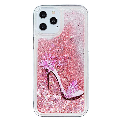YKTO Bellissima Glitter Compatible with iPhone 12 PRO Max Fluente Bello Liquido Galleggiante Custodia Glitter Rosa Sabbia Cuore Case Morbido TPU Silicone Trasparente Crystal Coperchio Ragazza Tacchi