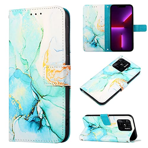 YKTO Cover per Redmi 10C PU Cuoio Flip Custodia Cinturino Polso Caso Portafoglio Carte Chiusura Magnetica Porta Supporto Stand Protezione Marmo Case Libretto per Redmi 10C-Verde