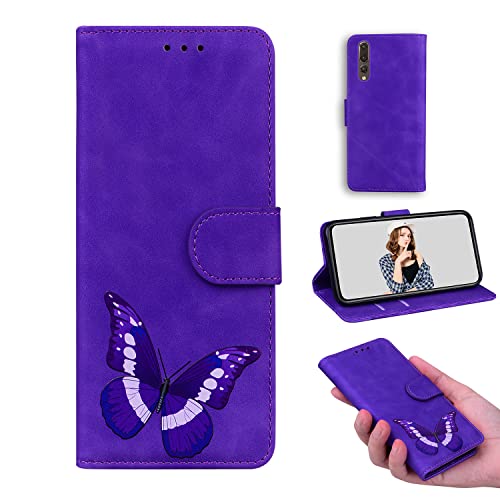 YKTO Custodia per Huawei P20 PRO Cases Flip Stand Portafoglio Cover Stampa Colori Butterfly Pattern Skin-Friendly Pelle PU Folio Custodia Interna Slot Schede TPU Case per Huawei P20 PRO-Viola