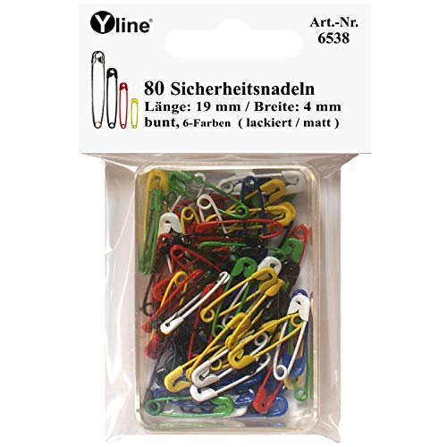 Yline 6538 - Mini spille da balia, 19 mm, 6 colori, senza nichel, confezione da 80