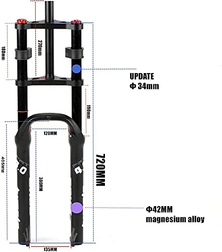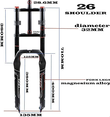 YLXD Sospensione ad Aria, forcelle per Bici 26 * 4.0 Fat Fork 135MM Smorzamento ad Ingranaggi Aperti Regolabile, per Mountain Bike Air Doppia Spalla in Discesa Ammortizzatore B