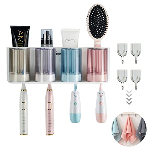 YLYOUNI Porta Spazzolini da Bagno da Muro per Uso Domestico, Set da Bagno Porta Sapone e Spazzolini con Ventosa Super Adesiva, 2 Tazze e 4 Scomparti per Spazzolino da Denti (4 Tazze)