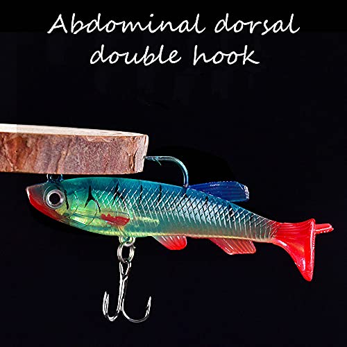 通用 YMDZ 5 PCS Esche da Pesca T Coda Esche Artificiali Siliconiche Manovella Piombo Pesce Gancio con Ami Tripli Adatto per Acqua Salata e d'Acqua Dolce