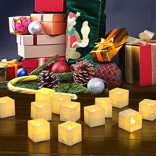 Ymenow Candele senza fiamma, 12pezzi candele a LED scintillanti a batteria Luci quadrate per camera casa Festa nozze Decorazione natalizia Halloween - Bianco caldo (Piccolo: 3,6cm)