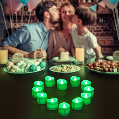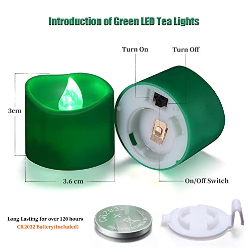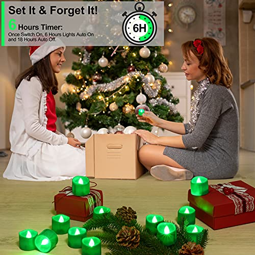 Ymenow Luci da tè a batteria a LED con timer, set di 12 candele tremolanti senza fiamma finte elettriche per decorazioni di Halloween per feste in casa - verde