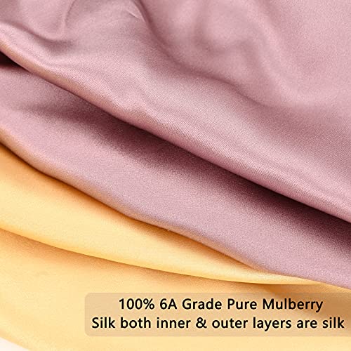 YMHPRIDE 2 confezioni Cuffia da notte in 100% seta di gelso Berretto da notte Cappello avvolgente in seta per le donne con perdita di capelli,19 Momme Morbido traspirante con maschera per gli occhi-C