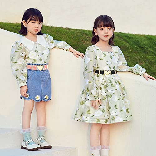YMIFEEY 2 Pezzi Cintura Elastica per Ragazze Regolabile Cintura Cintura Elastica in Vita con Cuore Carino Fibbia per Pantaloni Jeans Vestito Gonne,60*2.5cm,2 Colori
