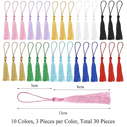 【Il pacchetto include】 kit di 60 pezzi, 30 pezzi segnalibri acrilico rettangolare + da 30 pezzi nappe in 10 colori (oro chiaro, rosso, rosa, viola chiaro, azzurro, blu reale, oro, verde, bianco, nero - 3 pezzi per colore)
