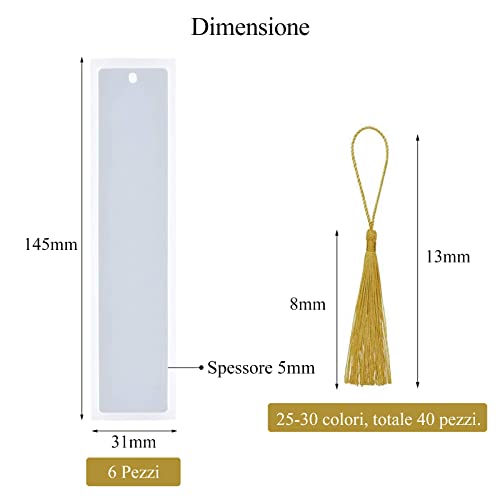 【❤ La confezione include】 6 stampi per segnalibri in silicone da 145 x 31 mm + 40 nappe di seta in 25 ~ 35 colori.
