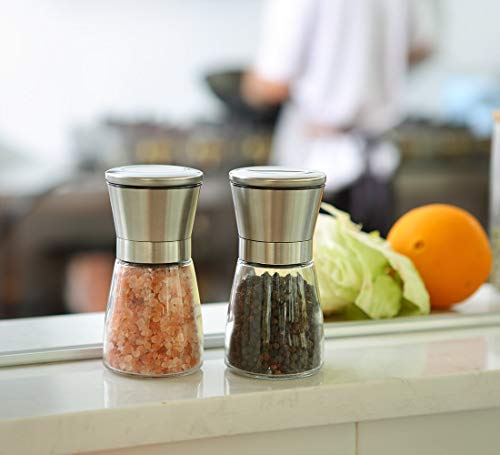 ✔Moderno design unico: set di macina sale e pepe in acciaio inox e vetro. Design semplice ed essenziale per un look elegante sulla tavola in ogni momento.