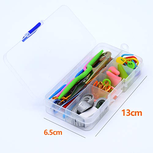 ❤ 【Portatile e compatto】 Il design compatto lo rende comodo da trasportare, il fermo del contenitore è robusto e rimane chiuso nella borsa. Non devi preoccuparti del disordine se la custodia è aperta.Ci sono 1 piccole scatole per conservare o trasportare i nostri prodotti.Kit perfetto per uncinetto / maglia per principianti e famiglia.