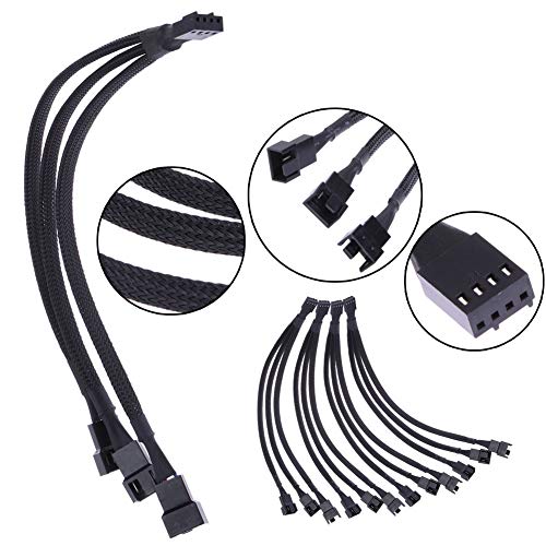 YMWALK Cavo ventola PWM a 4 pin Cavo adattatore splitter ventola Convertitore da 1 a 3 vie Splitter a forma di Y Cavo di prolunga con maniche nere per custodia host (confezione da 4)