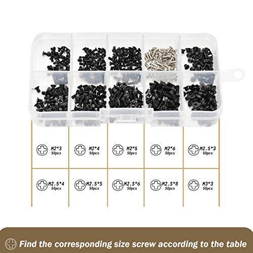 【La confezione include】 Nella confezione sono presenti 500 viti assortite per la riparazione del computer.Contiene 10 misure, ciascuna misura 50 pezzi.Dimensione M2 * 3/4/5/6 mm, M2,5 * 3,5 / 4/5/6/8 mm, M3 * 3 mm.