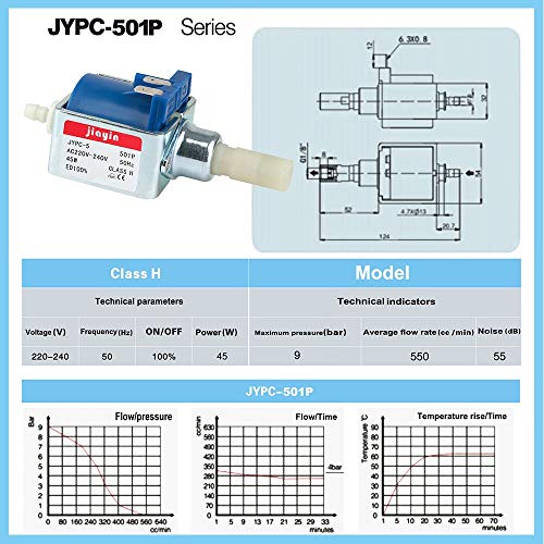 YMYGCC Pompa Acqua AC 220V - 240 V 9bar 45W Acqua elettromagnetica Pompa peristaltica Pompa ad Alta Pressione Macchina da caffè autoadescante 654