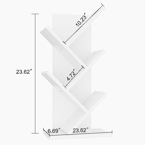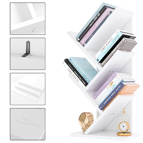 YMYNY Libreria ad Albero, Scaffale a 4 Ripiani, Moderna Autoportante Libri, Salvaspazio Legno Portaoggetti Librerie per Soggiorno, Studio, Ufficio, Bianco HBC014W