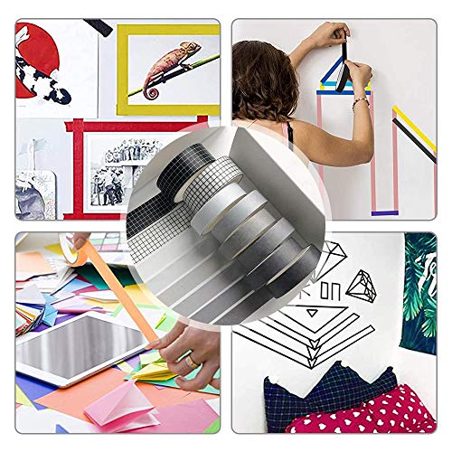 Yngffb washi tapes, 8 nastri adesivi colorati, nastro adesivo decorativo 3m ogni rotolo, Colore durevole, facile da dividere, per imballaggi, foglietti adesivi (larghezza: 10mm, 15mm, nero bianco)