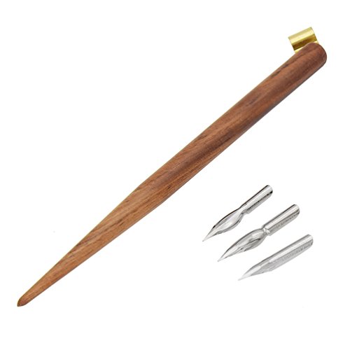 YNuth semplice solido legno penna English Copperplate Script oblique DIP Pen NIB Holder Set With Nibs