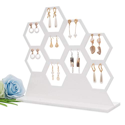YO-HAPPY Espositore per Orecchini, espositore per Orecchini a Nido d'Ape Bianco in Legno Naturale Contenere 9 Orecchini