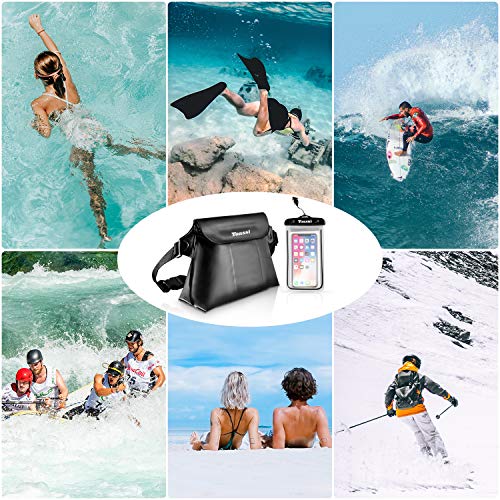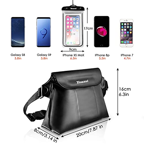 Yoassi Marsupio+Custodia Impermeabile,2 Borse Impermeabili da Mare per Smartphone Dispositivi Elertici Cintura Regolabile Chiusura a 3 Zip Super Protezione per Sport Pesca Vela Nuoto Campeggio Nero