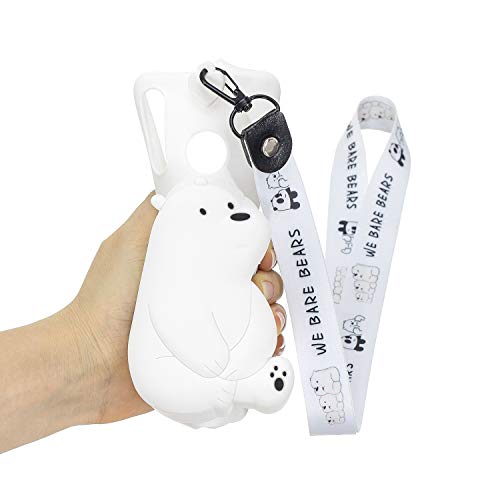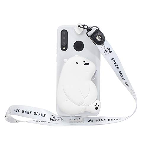 Yobby Cover per Huawei P30 Lite,Bianco Opaca Silicone 3D Orso Polare Animali Disegni Custodia Morbida Gomma Tasca con Cinturino,Kawaii Cool Moda Gel Case per Huawei P30 Lite