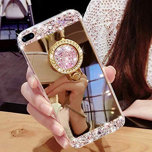Yobby Specchio Cover per iPhone XS Max,iPhone XS Max Oro Cover con Glitter Strass Diamanti Anello Cavalletto Kickstand Brillantini Cristallo Sottile Gomma Bumper Protettiva Custodia