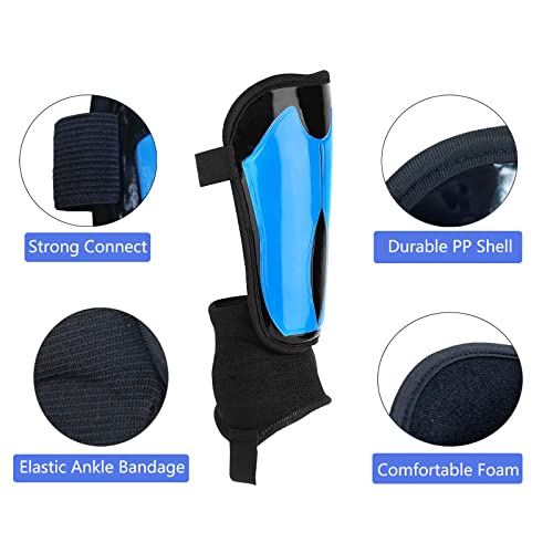 Yocuzee Parastinchi da calcio per bambini con calzini lunghi, parastinchi da calcio con protezione della caviglia, parastinchi ergonomici per ragazzi e ragazze