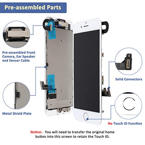 ⭐『Versione aggiornata』Questo schermo di ricambio include il pulsante di casa, la telecamera frontale, il cavo di prossimità, la piastra di schermatura in metallo, l'altoparlante dell'auricolare, non è necessario smontare queste parti dal vecchio schermo.