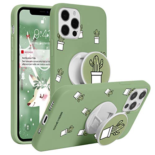 Yoedge per Apple iPhone 12 PRO / 12 6,1" Cover, Erba Verde Silicone TPU Custodia con Supporto e Impugnatura con Design Cute Cartoon Pattern Antiurto Protective Back Case per iPhone 12 PRO, Cactus