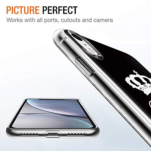 Yoedge Cover iPhone XR, [Ultra Slim] Custodia Cover Silicone con Disegni Queen King Corona Personalizzata Antiurto Morbido 3D TPU Bumper Case Protettiva per iPhone XR Smartphone (Queen, Nero-Bianco)