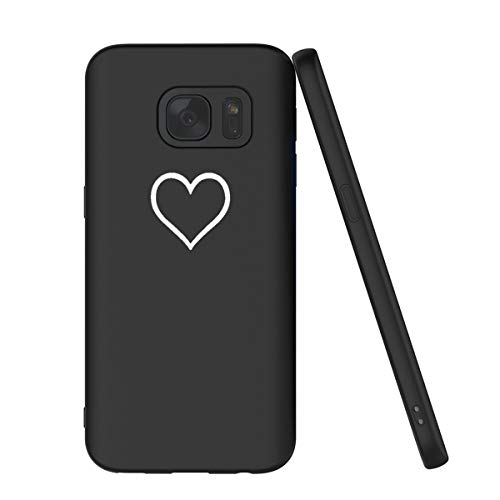 Yoedge Cover Samsung Galaxy S7, Sottile Antiurto Custodia Nero Silicone TPU con Disegni Pattern Ultra Slim 360 Protective Bumper Case per Apple Samsung Galaxy S7, Amore Nero