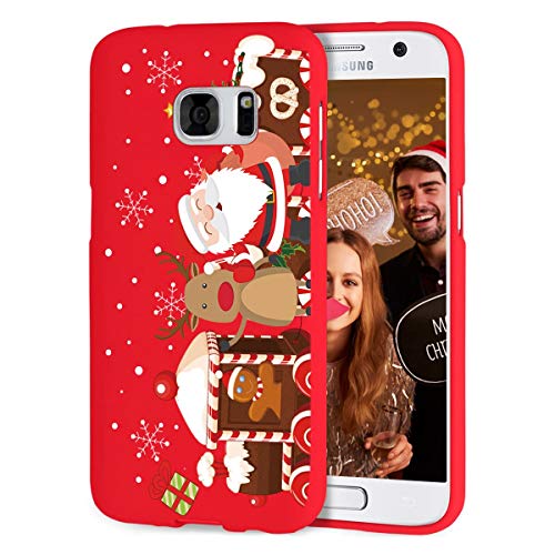 Yoedge Cover Samsung Galaxy S7 Edge, Sottile Antiurto Custodia Rosso Silicone TPU con Disegni Pattern Ultra Slim 360 Protective Bumper Case per Samsung Galaxy S7 Edge, Albero di Natale