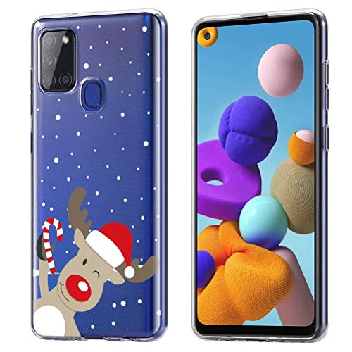 Yoedge Custodia per Samsung Galaxy A21s 4G da 3 Pezzi,Trasparente Morbida Ultra Sottile Crystal Clear Gel Protezione Antiurto Cover, Bella Disegno, Alci di Natale