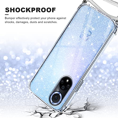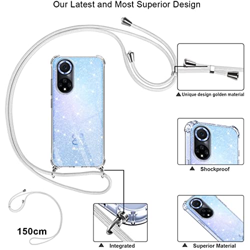 Yoedge Glitter Cordino Cover per Huawei P30 Lite 6,15", Trasparente Custodie con Collana Laccio Tracolla, TPU + PC Bumper Antiurto Protettiva Brillante Case per Huawei P30 Lite, Grigio Chiaro