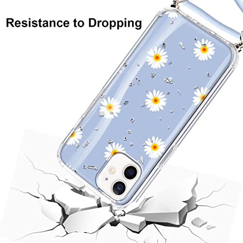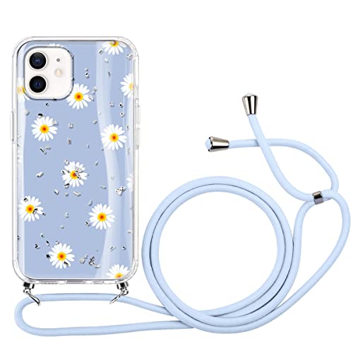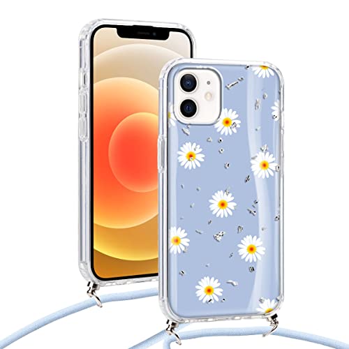 Yoedge Glitter Cover per iPhone 12 Pro/iPhone 12 6,1" con Cordino, Trasparente Morbido Silicone Custodie Marmo Disegno, Rigida PC Antiurto Brillantini Case con Laccio Tracolla per iPhone12,Margherita