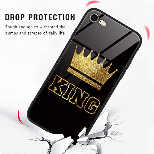 Yoedge iPhone 8 Plus Cover, [Ultra Sottile] Antiurto con Modello Disegni Custodia in Vetro Temperato [Morbido TPU Bordo in Silicone] Bumper Case Protettiva per Apple iPhone 7 Plus / 8 Plus, King