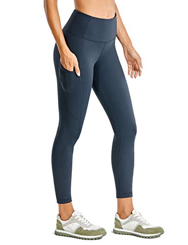CRZ YOGA Donna Capri Leggings con Tasche Laterali Vello Leggero Pantaloni Sportivi Vello Spazzolato Leggero -63.5cm True Navy 40