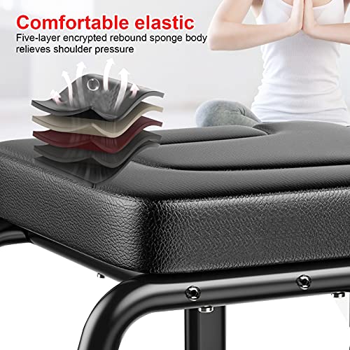 Materiale confortevole e di alta qualità: la Panca da Yoga ha uno spesso cuscino imbottito in PU, spessore fino a 2,36 pollici / 6 cm e un design ergonomico. L'utente può ottenere il massimo comfort dalla sedia di inversione yoga e alleviare completamente la pressione sul collo e sulla spalla.