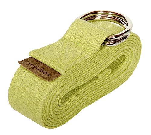 Yogabox, cintura da yoga, chiusura con fibbia in metallo composta da due anelli a forma di D, prodotta in Germania, 100% cotone, lavabile in lavatrice fino a 40°C., Unisex, verde tiglio, 2,5 m