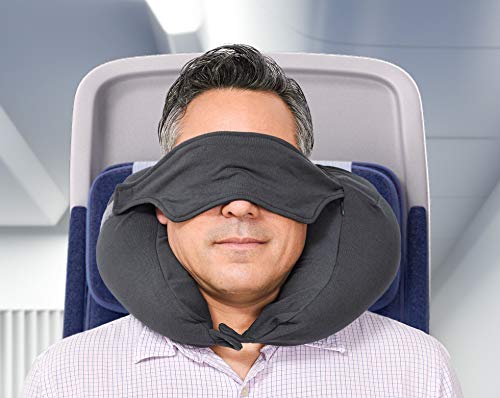 Yogibo Cuscino da viaggio Nap X per aeroplani, per dormire, riposare, cuscino per il supporto del collo include maschera per gli occhi attaccata, grigio scuro