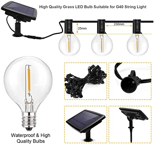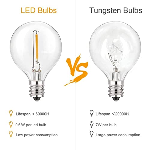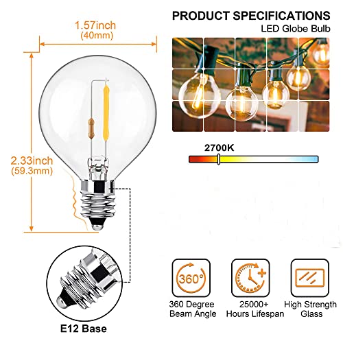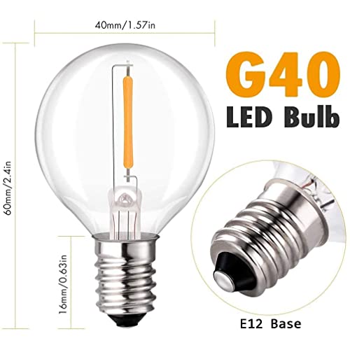 Yohencin Lampadine a LED G40, E12 Edition 3 V, a bassa tensione, 4 lampadine bianco caldo, 2700 K, lampadine di ricambio in vetro trasparente per luci solari impermeabili G40 Globe Outdoor (LED)