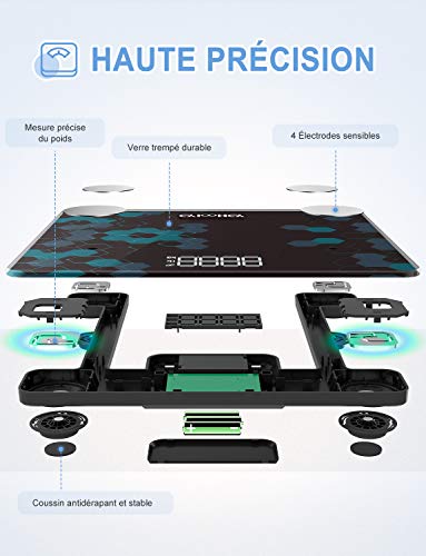 【Alta qualità e automatico】4 elettrodi sensibili con la più recente tecnologia possono garantire una misurazione rapida e precisa del peso fino a 180 kg con incrementi di 0,05 kg. Calibrazione automatica, riconoscimento automatico, accensione/spegnimento automatico, calibrazione automatica, batteria scarica e indicazione di sovraccarico. Realizzato con piattaforma in vetro temperato di alta qualità. 3 batterie AAA incluse.
