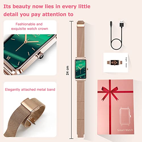 [Grande schermo a colori da 1,45 pollici, interfaccia utente fai da te]: l'orologio intelligente da donna adotta un nuovo quadrante rettangolare, un design in vetro curvo 2,5D, dona un aspetto omogeneo e rende l'esperienza tattile più fluida. Il corpo dello smartwatch è in metallo. 5 interfacce utente femminili possono essere sostituiti gratuitamente, dopo aver effettuato l'accesso all'app del telefono cellulare, c'è molta interfaccia utente tra cui scegliere.