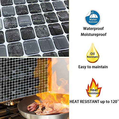 Yoillione Mattonelle Mosaico Piastrelle Cucina Nero, Autoadesivo Mosaico Adesivo 3d Mattonelle Adesive Bagno Piastrelle Adesive da Parete Impermeabile, Vinile PVC Paraschizzi Cucina, 4 Pezz