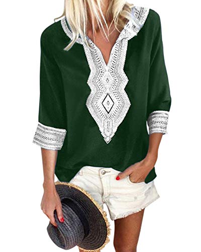 YOINS - Camicia da donna, elegante, a maniche lunghe, con scollo a V, stile vintage, stile casual verde L