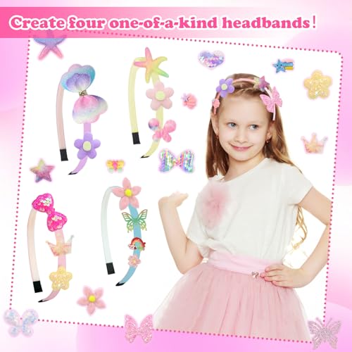 Creatività leggera per bambini di 5-12 anni! Perfetto per bambini dai 6 ai 12 anni: non è necessario cucire o tagliare, basta attaccare i graziosi accessori agli accessori per capelli. Questo set di fasce per capelli fai da te risveglia la creatività e l'immaginazione dei bambini di 5-12 anni. Lascia che i tuoi piccoli vivano la loro immaginazione! Oltre al divertimento, vengono incoraggiate le abilità artigianali e la comprensione dei colori.
